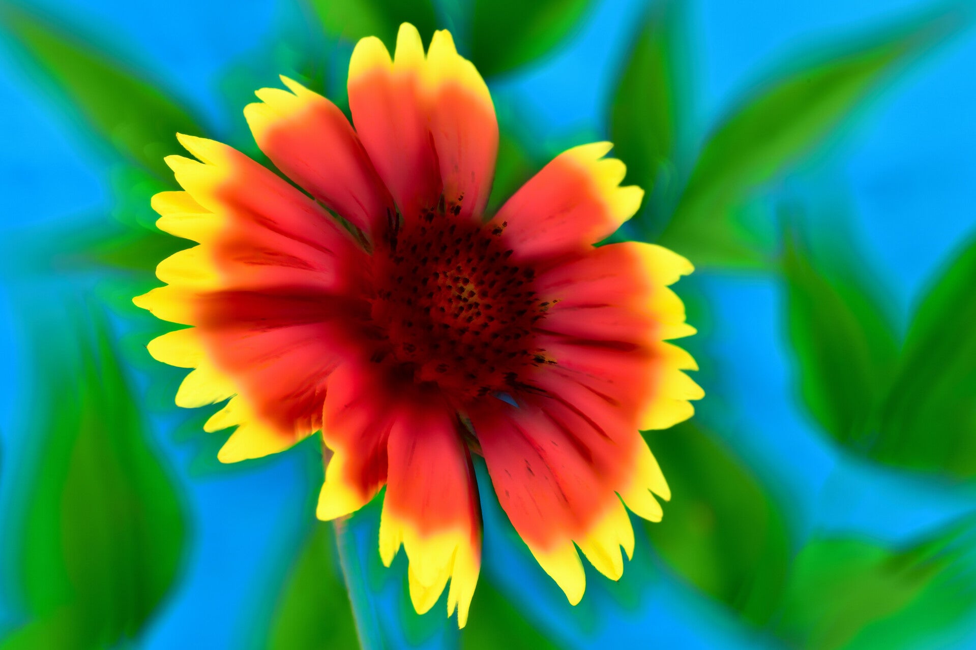 Wie in der Pop Art, kommt es mir in erster Linie nicht auf die haarfeinen Details an, sondern auf den Effekt. Zu den kräftigen Farben der Blumen wählte ich einen Hintergrund mit hohen Farbkontrast.